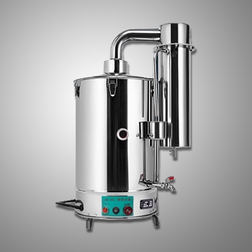 The HK-20L Water Distiller produces pure water through the distillation method by electrically heating tap water. It is applicable for use in sectors such as medical and health care, pharmaceutical manufacturing, and laboratories.