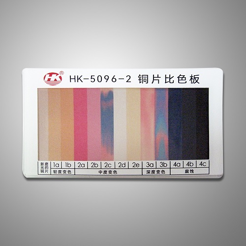 The HK-5096-2 Copper Strip Color Comparison Plate meets the requirements of test methods GB/T 5096 and ASTM D130. It is suitable for determining the corrosive intensity of aviation gasoline, jet fuel, motor gasoline, natural gasoline, or other hydrocarbons with a Reid vapor pressure not exceeding 124kPa (930mmHg), solvent naphtha, kerosene, diesel oil, distillate fuel oil, lubricating oil, grease and other petroleum products to copper strips, and judging the corrosion grade by means of comparison.